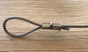 For fast installation, one of the ends of the stainless steel 1.6mm cable has been swaged, so it already has a loop in it which you attach to a turnbuckle.